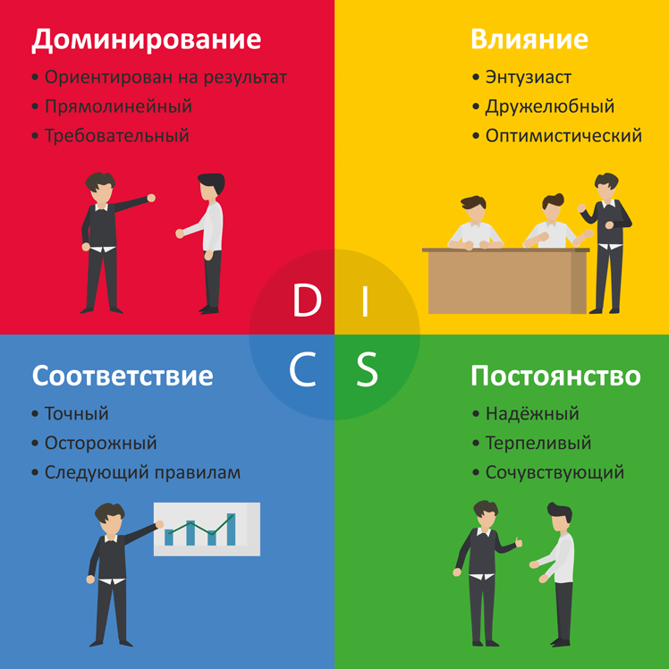 - D — Dominance: Напористый, решительный. Что важно: результат, контроль